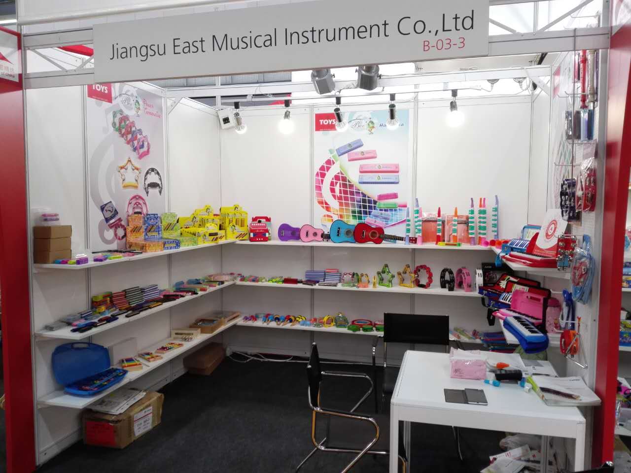 我司推出的BEE牌各类玩具:口琴,口风琴,管风琴,手风琴,打琴,竖笛,铃鼓,沙球,吉他等都参与了此次展览,这对我司的玩具类乐器知名度。