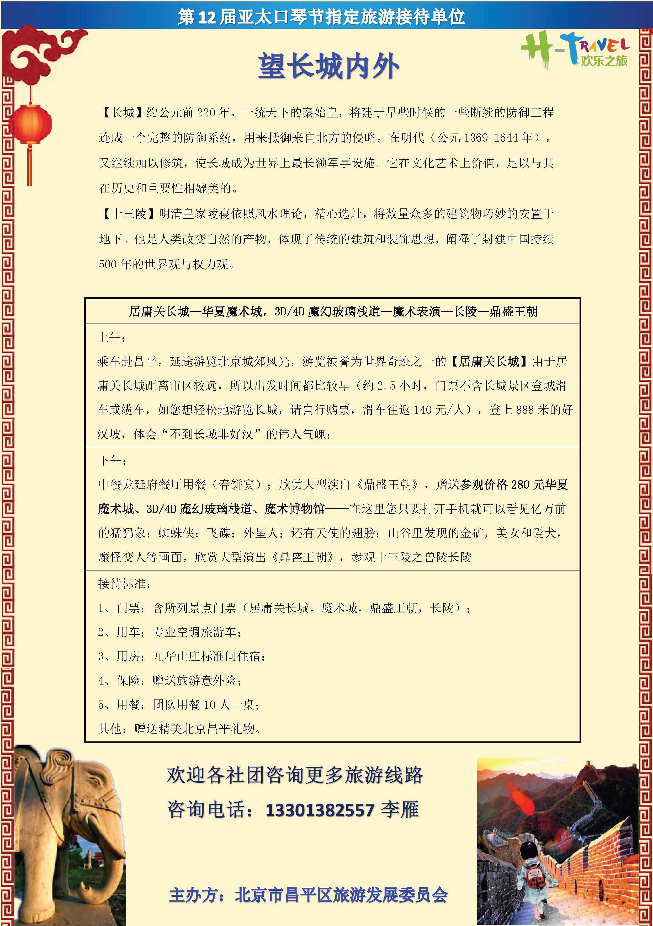 2.大会活动期间,旅行社将会在活动现场设立服务柜台,方便旅游咨询和接待散客旅游。
