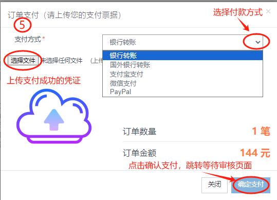 第五步:点击“选择文件”,选择你使用的支付方式,确定上传。