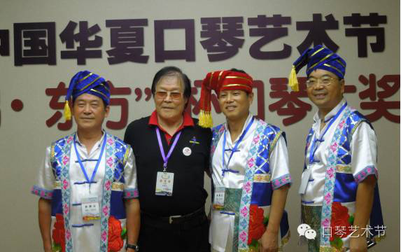 2015年82日至4日,长沙湘江乐艺术团口琴重奏《踏歌追梦》节目组唐琪安(右二)、马永新(左一)、张仲杰(右一)与首届华夏口琴艺术节及大奖赛主席白燕生老师合影。