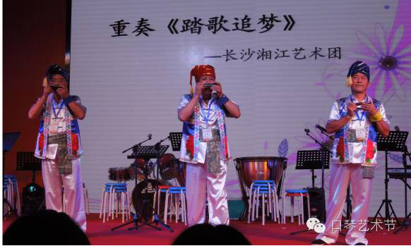 2015年83日下午,长沙湘江乐艺术团的自创口琴重奏曲《踏歌追梦》节目组应邀参加首届华夏口琴艺术节名家口琴音乐会,唐琪安(中)、马永新(右)、张仲杰(左)的精彩表演获得了老、中、青口琴演奏家和爱好者的一致喝彩,他们认为,口琴音乐融入民族音乐元素,创作路子是正确的。